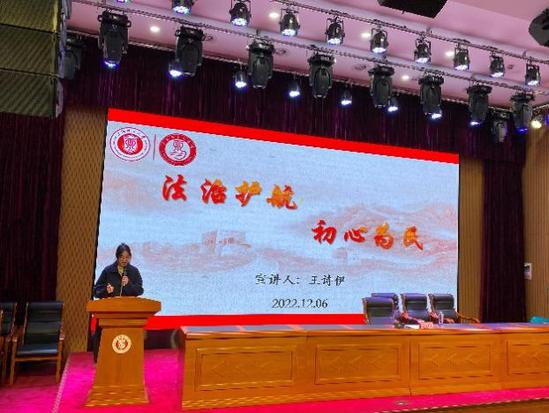 讲座正式开始前,习近平新时代中国特色社会主义思想研习社(宣讲团)成员王诗伊进行“法治护航,初心为民”主题宣讲,她指出,法治与党的事业发展密切相关。全面依法治国是国家治理的一场深刻革命,关系党执政兴国,关系人民幸福安康,关系国家长治久安,呼吁当代青年自觉做社会主义法治的忠实崇尚者、自觉遵守者、坚定捍卫者。