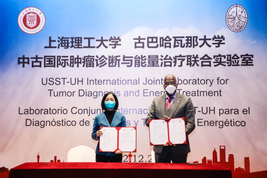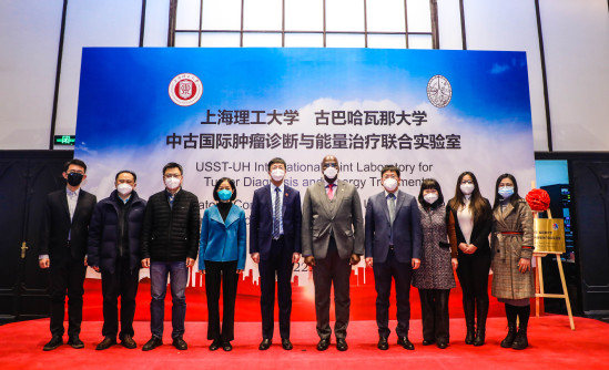 12月22日上午,中古国际肿瘤诊断与能量治疗联合实验室签约揭牌仪式在学校大礼堂二楼贵宾厅线上线下同步举行。古方出席会议的有古巴驻上海总领事迪亚斯,古巴哈瓦那大学校长加西亚、常务副校长席尔瓦,永利集团304am官方入口党委书记吴坚勇、副校长蔡永莲,党校办、国交处、科研院、健康学院、材料学院等有关职能部门和学院负责人参加活动。仪式由蔡永莲副校长主持。