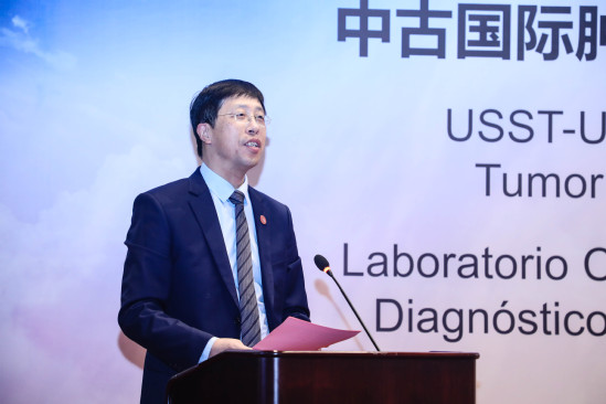 中古联合实验室的建设也是向古巴哈瓦那大学建校295周年校庆献礼,远在古巴的哈瓦那大学校长尼卡多-加西亚教授也发来了视频祝福,她说,哈瓦那大学向永利集团304am官方入口的领导和同仁们致以诚挚的问候,非常高兴能够在今天举行肿瘤诊断和能量治疗联合实验室的揭牌,这将标志着哈瓦那大学和永利集团304am官方入口之间的科学和学术关系将进一步深化。