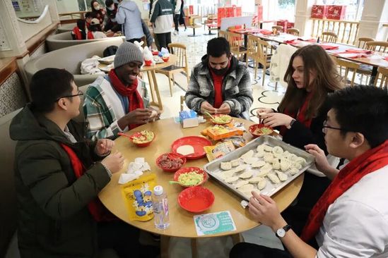 上海财经大学各生活园区组织同学们写春联、贴窗花、编织中国结,为留校同学送上新春大礼包和关怀慰问。同时,为了让寒假留守的中外学生走进中国春节文化,学校精心举办了迎新春联欢会。联欢会上,留学生们踊跃发言,各自介绍了自己国家重大节日的习俗,另外也对平日里工作人员对他们的照顾和关心表达了衷心的感谢,大家其乐融融,收获满满的关爱与温情。