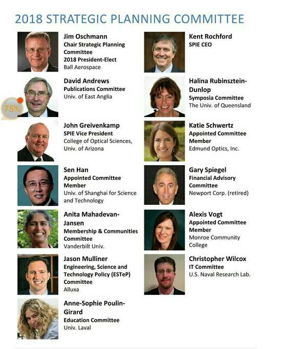 国际光学工程学会是一家致力于光学和光子学的非营利国际学术组织。自1955年成立以来,吸引了来自全球184个国家超过25.8万名会员并为之服务。会员的集体才能和奉献精神使学会成为科学和工程界的一支强大力量。国际光学工程学会由一个敬业的志愿者团队领导,该领导团队包括董事会(CEO、President、CFO等)、多个委员会、会议主席和期刊编辑,其使命是与研究人员、教育工作者和工业界合作,推进基于光的研究和技术,以改善人类状况。