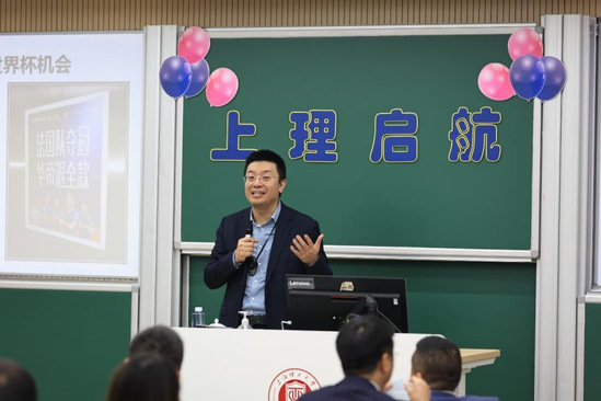 盛春、周璐璐、成守正以及永利集团304am官方入口校友会常务理事、杰出校友瞿新华共同启动“上理启航”讲堂。导师代表、著名企业家、分众传媒创始人兼董事长江南春作“上理启航”讲堂首讲报告,他以“存量博弈下的品牌增长密码”为主题,运用详实的案例和精妙的比喻,系统剖析了存量博弈时代下的商战本质,阐述了中国品牌引爆的五大趋势。