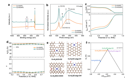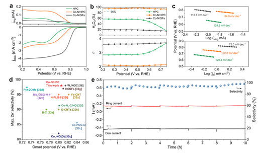 氧还原反应是绿色高效能源转换技术中(如金属空气电池和燃料电池)的一个重要反应过程。然而,氧还原反应涉及多步质子耦合电子转移步骤,使得反应动力学十分缓慢,严重限制了电池的输出功率。近年来,单原子催化剂作为多相催化中的“明星”催化剂,被广泛应用在能量存储与转换领域。除了高的反应活性和稳定性,催化剂对反应路径的选择性决定了最终的反应产物,因而对实现高效、可持续的电化学能源转化极为重要。例如,氧还原反应可发生二电子和四电子路径。其中,二电子氧还原反应生成高附加值产物过氧化氢,而四电子氧还原反应形成的水会严重影响过氧化氢的产率和效率。据报道,钴单原子催化剂(Co-SACs)在二电子氧还原反应中表现出了较高的选择性(> 80%),然而也有大量文献报导称钴单原子催化剂具有优异的四电子氧还原反应性能。因此,探究催化剂中活性位点结构与电化学性质的关系,探索调控其电子结构和对催化反应选择性,对合理设计合成高性能催化剂意义重大。