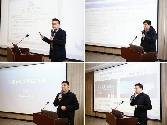 随后,创新创业学院院长郝润科对永利官网近年来开展学科竞赛工作情况进行了分析总结。光电学院常务副院长张大伟、机械学院副院长钱炜、外语学院副院长张乐分别对学院开展学科竞赛情况做了经验交流。2022年第八届“互联网+”全国金奖指导教师季云峰做了指导竞赛的经验分享。创新创业学院、校团委、研究生工作部对2023年“互联网+”、“挑战杯”大赛和研究生系列赛事进行了工作部署。