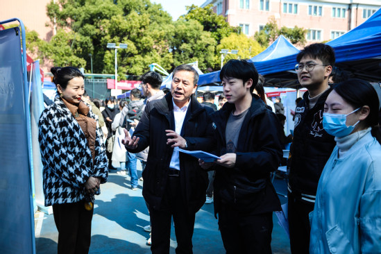 学校领导高度重视毕业生就业工作,始终将其摆在学校工作的重要位置,在学校党委常委会、校长办公会、春季学期干部教师大会等重要场合要求全校上下关注和参与就业工作。校长丁晓东,校党委副书记、副校长盛春亲自带队走访企业并多次到招聘会现场调研,与用人单位、应聘学生深入交流,了解企业用人需求、学校人才培养质量、学生求职心态等情况。各学院相关负责人、毕业班辅导员也主动到现场对接校企合作、开拓就业市场,千方百计促进毕业生就业工作。