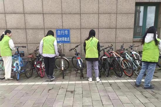 管理学院开展“规范单车摆放,助力文明校园”志愿服务活动,呼吁师生做文明的骑行者、停放者、宣传者。