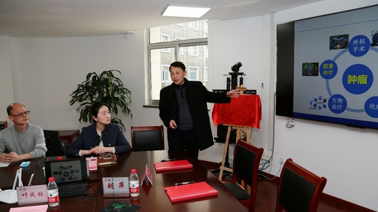 刘宝林介绍了上海市肿瘤能量治疗技术与器械协同创新中心的建设情况,尤其是在肿瘤冷热消融技术和仪器开发方面取得的研究成果和面临的技术挑战,并期待积极融入医院未来的发展规划,整合医院和中心的优势资源,实现强强联合,共同推进分中心的高质量建设。贡东卫介绍了医院在肿瘤治疗方面的历史、科教研发成果、医工交叉项目、优秀学生的双方合作培养体系以及未来医院的发展规划,对双方合作表示高度支持,认为市东医院分中心的成立将进一步推动双方合作全面发展,推进大学科研单位和医疗机构间的双赢合作。