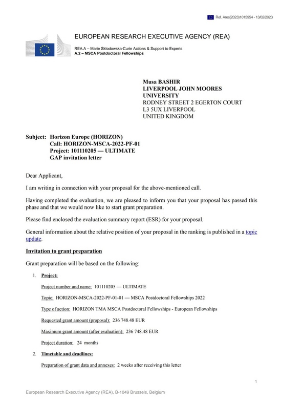 “玛丽·居里学者计划”(MSCA)以两次荣获诺贝尔奖的波兰-法国科学家“居里夫人”命名,与英国牛顿学者、德国洪堡学者并列为欧洲三大杰出人才计划,在国际上享有很高声誉。该计划面向全球开放,以竞争激烈、申请难度大著称,2022年度在工程技术领域的全球范围资助率约15.37%,许子非博士以总评分95.8%获该项目的资助。