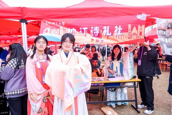 此次社团文化节采用社团展示、同学互动和展位集章打卡结合的方式,通过各个展位全方位、多角度展现学生社团风采。摆台活动中,沪江诗礼社、尚理国学社等传统文化类社团共绘一幅古风古韵的中华民族五千年历史画卷,在现代化与传统文化的交融中,引导上理学子坚定文化自信;无锋击剑社、弓箭社等体育活动类社团展现了拼搏向上的体育精神和积极向上的大学生活,他们在展位附近设置了相关的趣味运动项目,同学们跃跃欲试,助力建设体育强国;红十字会的同学们穿着人偶服装在摊位附近游走,通过相互拥抱的方式传递正能量。各社团花样迎新显青春活力,百花齐放展上理风采,同学们纷纷表示,被创新的形式、热情的邀请、趣味的活动所吸引,更加期待疫情散去的大学校园生活。