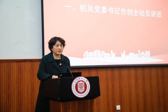 机关党委书记孙红在动员讲话中指出,在学校创建全国文明校园进入冲刺阶段的关键时期,机关党员干部更要充分发挥示范引领作用,做到三个“先锋表率”:一要做讲政治的先锋表率。机关党员干部要走在党的创新理论学习的前列,通过“围绕主线学”“带头率先学”“知行合一学”,切实把思想和行动统一到党的二十大精神上来,使讲政治成为工作的根本坐标。二要做强效能的先锋表率。机关教工要迅速行动起来,推动“创全有我”“调查研究”“问计求智”“结对共建”“我为群众办实事”等五项行动融合发力,落细承诺践诺措施,落实“五个人人”校园建设要求,切实为师生办好实事、解决问题。三要做“红底色”的先锋表率。要通过宣传展示比拼,推动机关服务意识再深化、业务本领再增强、服务效能再提升。她号召机关全体教工要以奋勇争先的激情、只争朝夕的干劲、水滴石穿的韧劲,扛起责任、拿出担当,全力以赴把争做三个“先锋表率”落到实际行动中,为坚决打赢“创全”决胜战贡献机关教工的智慧和力量。