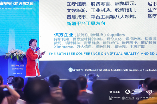 元宇宙入口有了“光”,却还有很长的路。作为上海市多媒体行业协会副秘书长、XR专委会主任,端木海婴在元宇宙产学研主题峰会上披露了全国十多个相关行业组织联合发布的2022元宇宙产业化赋能白皮书研究成果。“元宇宙是既定大趋势,但创新技术在产业化进程中需要解决技术‘有地方用’、客户‘有想法用’、本身‘真的有用’、路径打穿的‘推动作用’等问题。” 她表示,最终用户对于元宇宙已经从尝鲜到实践,希望能获得工具化、标准化、易用型的可交付解决方案。