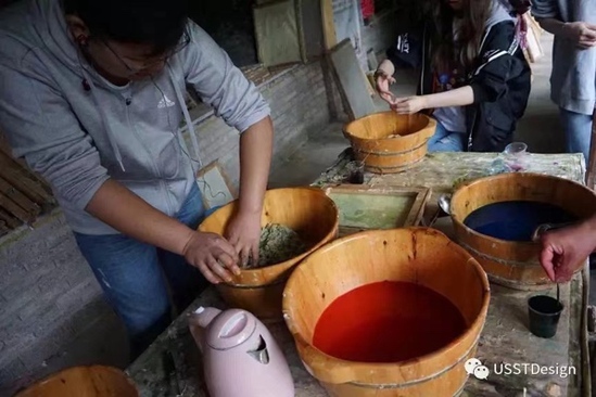 学生在贵州石桥古镇国家级非遗手工造纸基地实训