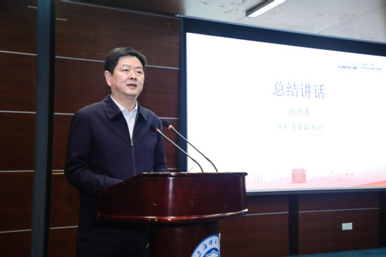 孙跃东在总结讲话中对学院过去一年取得的成绩表示肯定,面向未来,他谈了三点希望:一是深入学习宣传贯彻党的二十大精神,学院要永葆“闯”的精神,把党的二十大精神、全国两会精神和市第十二次党代会精神贯彻好落实好,统筹谋划好各项事务,以拼抢实的作风,聚精会神谋发展、心无旁骛抓发展、集中精力推发展;二是牢牢把握高校立德树人根本任务,学院要夯实“干”的作风,以党建引领人才培养,加大人才引进培育力度,加快产学研成果转化,以时不我待紧迫感发扬依托行业、产学研相结合的办学传统,坚定不移走内涵发展之路;三是以饱满的热情创建全国文明校园,学院要激发“创”的劲头,以创建全国文明校园为核心,在思想道德建设、领导班子建设、教师队伍建设、校园文化建设、优美环境建设、活动阵地建设等方面下功夫、显特色,以此推动学院和学校各项事业快速发展。