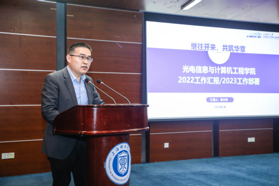 张大伟从党建引领事业发展、办学绩效目标、主要工作业绩突出亮点等方面向全体教师介绍了学院2022年事业发展情况。他着重分析学院目前发展存在不足和问题,并指出,2023年学院主要围绕落实党建与事业发展深度融合,积极构建协同育人体系,补齐学科短板、冲击“双国”助推科研走上新台阶,以全面教育教学改革构建卓越工程人才新体系,全力提升研究生培养质量与打造培养新特色,以深化人事制度改革完善考核和分配新机制,以深化国际合作主动扩大国际影响力等七个方面开展工作,以改革立院、科研兴院、人才强院、依法治院,持之以恒,最终建设成具有国内外重要影响力的科研教学型学院。
