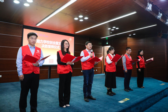 随后,举行了创建全国文明校园誓师仪式。学院来自党建、教学、科研、管理、学生工作等条线的教师代表和学生代表发出决胜倡议,纷纷按下手印、许下承诺,践行“文明,让上理更卓越”。