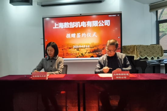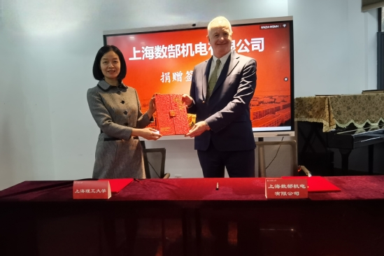 会上,蔡永莲代表学校与上海数郜机电有限公司签署捐赠协议,并向企业代表John Stewart颁发捐赠证书。