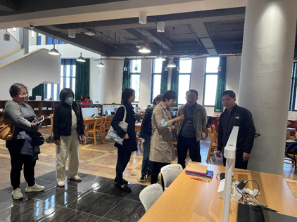 座谈后,工技大一行9人到5-6楼、8楼学习空间进行实地参观,了解永利官网图书馆座位预约管理系统、阶梯式自修室与研讨室的预约使用、文化长廊宣传及瀑布流电子图书下载阅读及读者导引、智慧自助借还书等,详细了解永利官网图书馆基本运行与资源服务等具体做法。