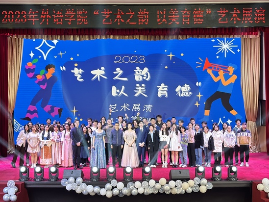 高校美育工作是人才培养体系的重要组成部分,为了丰富校园生活,提升永利官网学生艺术素养,促进学生德智体美劳全面发展,4月7日晚,由外语学院主办的“艺术之韵,以美育德”艺术展演晚会在大礼堂举行。外语学院党委书记曲德强、副书记金小东、副院长韩戈玲出席晚会,全校500余位师生观看演出。