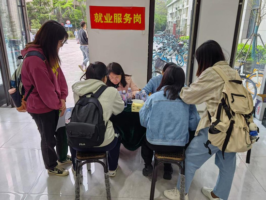 各系专业老师和毕业班辅导员老师在会场了解同学的参会情况,老师们积极了解同学的求职意向和就业动态,并对同学的求职思路、就业手续等进行指导。学院开设了就业服务岗,邀请资深就业导师给同学现场点评讲解简历,同学们纷纷表示受益匪浅。