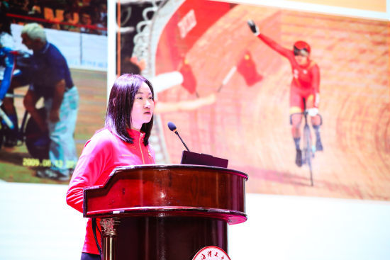 这是发生在4月24日下午永利集团304am官方入口党的二十大精神宣讲报告会上的一幕。应学校邀请,党的二十大代表、里约和东京两届奥运会场地自行车冠军钟天使来到上理,作题为“传承为国争光红色基因,勇担体育强国时代使命”的主题报告。