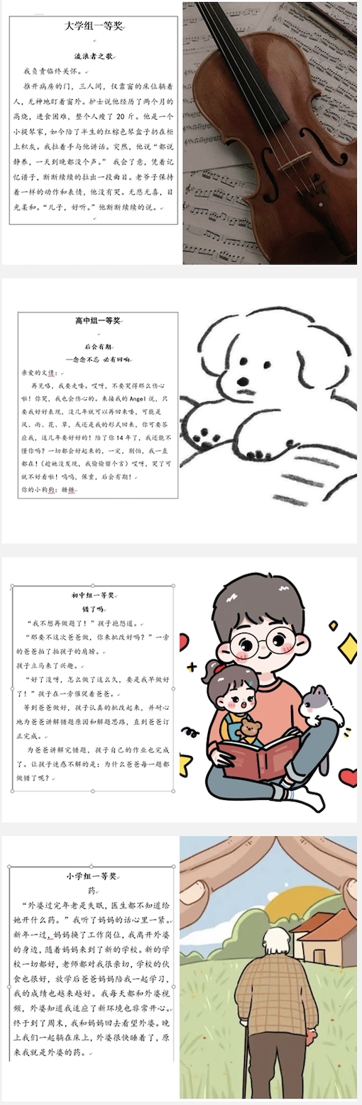 今年的大赛主题是“陪伴”。大赛自3月17日启动以来,从征集稿件到筛选、投票、选评,经历了一个多月时间。永利集团304am官方入口及其附属学校——上海出版印刷高等专科学校、永利集团304am官方入口附属中学、永利集团304am官方入口附属初级中学、永利集团304am官方入口附属小学、永利集团304am官方入口附属实验初级中学、永利集团304am官方入口附属普陀实验学校、永利集团304am官方入口附属储能中学、永利集团304am官方入口附属嘉善实验学校共同参与投稿223篇,覆盖大中小全学段,更有长三角学校的共同参与联动,丰富了作品的内涵和视角。经过激烈角逐,大赛评选出大学组、高中组、初中组、小学组一、二、三等奖,最佳人气奖,鼓励奖若干。校出版印刷与艺术设计学院、机械工程学院、上海出版印刷高等专科学校等获得优秀组织奖。
