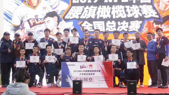 作为校橄榄球队主力,与队友一起拿下全国亚军