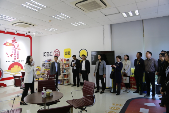 理学院一行在工商银行杨浦支行解说员的带领下参观了杨浦支行营业厅,工作人员热忱的服务将“便民”工程落到实处,大厅内设置了“自助办税服务区”“美团骑手爱心驿站”,扎实推动“为民办事见实效”,处处彰显将党建工作与中心工作相融合的理念。