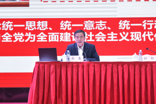 盛春以《坚定理想信念,锤炼党性修养,以青春助力中国式现代化》为题作专题报告。他要求全体学员要以端正入党动机、坚定理想信念、锤炼党性修养作为本次学习目标,从“学思想、强党性、重实践、建新功”四个方面入手,强调了对于即将加入中国共产党的发展对象来说,学习习近平新时代中国特色社会主义思想的重要意义。他指出,要把崇高政治信仰的指引、核心价值追求的凝聚、伟大历史成就的感召、先进党员群体的引领和实现自我价值的期望作为加入中国共产党的初衷,把自觉尊崇党章、主动改造思想、练就过硬本领、勇担时代使命、坚持人民立场作为当代青年坚定为共产主义奋斗的信念,坚持“学思用贯通、知信行统一”,以实际行动争取早日加入中国共产党,以奋斗之青春书写出“为人民服务”的绚丽篇章。