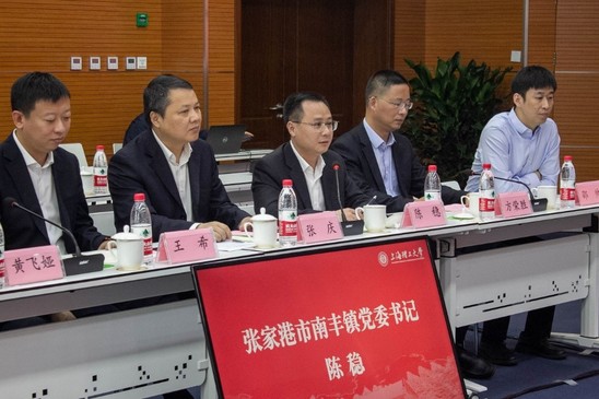 陈稳就张家港市南丰镇的产业集聚、企业需求、落地优惠政策等做了介绍。他指出,希望与学院进一步深化交流合作,加强科研人才培养,推动校地企合作达到新高度,助力校地双方共同发展。