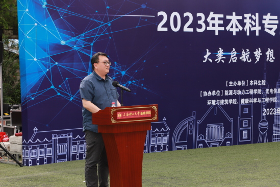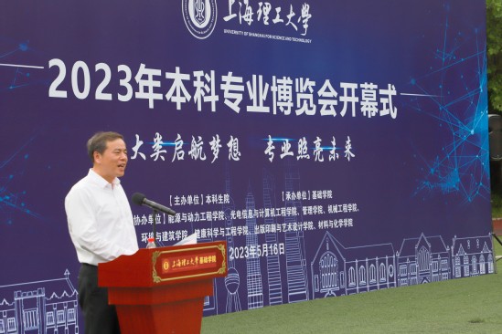 为贯彻落实党的二十大精神,进一步落实学校打造一流本科、建设一流专业、培养一流人才的目标和要求,深入推进大类招生与培养,更好展示专业建设成果,推动2022级本科生结合自身实际选择专业方向,5月16日下午,由本科生院主办、基础学院承办、各专业学院协办的2023年本科生专业博览会在军工路1100号校区操场正式拉开帷幕。党委副书记、副校长盛春出席开幕式,本科生院及各相关专业学院党政领导、教师代表、学生代表、各学院联络员、辅导员以及2022级全体本科生共同参与活动。活动由基础学院院长马军山主持。