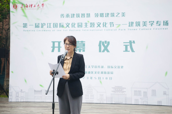 5月18日下午,由党委宣传部、国际交流处以及上海市杨浦区文化和旅游局主办,以“传承建筑智慧,领略建筑之美”为主题的第一届沪江国际文化园主题文化节开幕式在北欧大草坪举办。杨浦区委宣传部副部长、区文化和旅游局党组书记胡琳,副局长朱音奇,校党委常委、宣传部部长叶磊及环境与建筑学院副院长王丽慧出席开幕式。活动由国际交流处副处长徐琳主持。