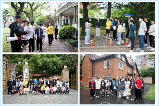 活动伊始,档案馆吴禹星和刘淑娟两位老师分别带队,从军工路516号校门出发,沿湛恩大道,经沪江国际文化园到国旗广场,讲解分布在校园内的多栋历史建筑沿革及人文典故,探寻历史记忆。军工路校区完整保留了沪江大学时期建成的36幢哥特式风格建筑,是上海高校中规模最大的国家级优秀历史建筑群。2019年,“沪江大学近代建筑”入选第八批“全国重点文物保护单位”。游走在校园仿佛置身于一个大博物馆,触摸历史,聆听回响。
