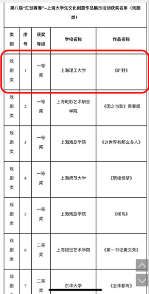 永利官网原创话剧《旷野》勇摘上海市“汇创青春”一等奖榜首