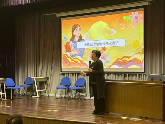 馆长郑亚用朴实的语言讲述了鲁迅先生为社会和民族做出的伟大贡献,回顾了上海鲁迅纪念馆的筹建历史以及在鲁迅研究中作出的努力。她指出,鲁迅从文学家、革命家、翻译家到艺术收藏人、文博先行者和装帧设计师等,“斜杠”众多的鲁迅是文学巨匠,更是“生动”的人,她勉励同学们要从我们的“附近”出发,走向历史的深处。