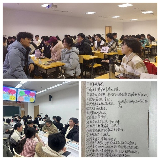 实践教学的内容是根据理论教学的要求进行设计。本学期开始,实践教学课程分班分步实践,由张芝老师的“大学生心理健康”课程,周丽娜老师带教的“大学生涯规划”和“情绪管理”课程,田媛媛老师的“时间管理”课程,裴菁老师的“确定职业目标”课程,陈红梅老师的“生涯决策”课程,周蓉老师的“大学生工作世界探索”课程,张卫老师的“探索职业兴趣寻找职业方向”课程,通过小班教学,小组讨论,交流分享,案例分析,游戏体验等不同教学方法开展实践教学,既传授了思想和价值观,也破解了学生现实中生活学习中的难点和堵点,得到同学们的积极反馈。