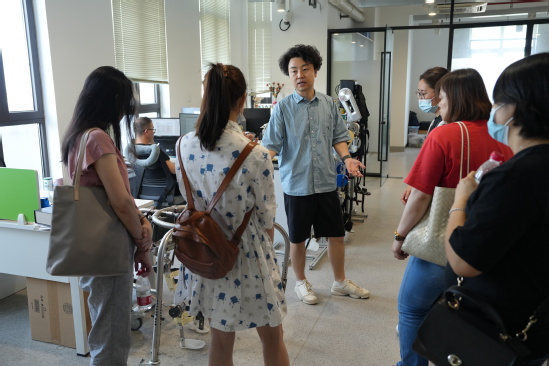“我们获批国内首个康复工程本科专业,2018年泰王国诗琳通公主受邀访问中心并亲自为中心揭牌,我们成功研发出国内首款智能液压假肢膝关节等多种国际领先的康复器械……”上理工副教授王多琎一边介绍着上海康复机械工程技术研究中心的累累硕果,一边向怀一老师们展示着神经康复机器人、康复护理与辅助机器人、智能假肢等科创成果,让大家大开眼界。