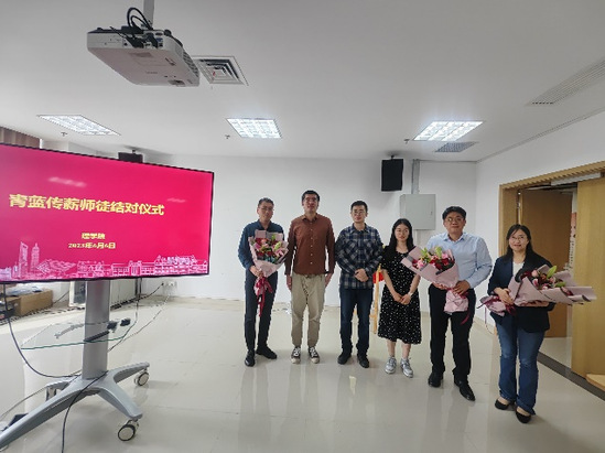 随后进行青蓝传薪师徒结对仪式,为了让新进教师快速融入学院的教学文化氛围、适应新时代背景下的现代教学,学院坚持以“师徒结对”“跟岗培养”为抓手,充分发挥名优骨干教师的“传帮带”作用,由导师通过教学示范、课前指导、课堂观察、课后研讨、教学研究等形式,帮助新教师切实提升课堂教学能力与教学管理能力。年轻教师代表与经验丰富的资深教师进行师徒结对,是师道传承的重要价值体现,通过帮扶模式,为新教师的专业成长提供帮助,是学院对青年教师培养新篇章的开启。