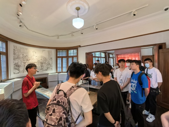 复旦大学“星火”志愿讲解队队员卢家伟为本次支部参观做讲解,在展示馆一层的“宣言中译 信仰之源”主题教育展中,卢家伟讲解了《共产党宣言》的诞生、中译过程及其对中国革命乃至全世界的深远影响,同学们从中感受到上海红色起源地的精神与传承。