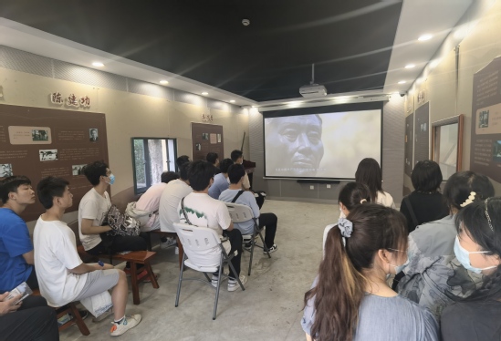 在展览馆二层和三层的“千秋巨笔·一代宗师”展览中,讲解员介绍陈望道的生平、学术及藏书,参观期间同学们真切感受陈望道先生的崇高精神,深入了解党的理论基础和历史渊源,加深了对真理和初心的理解与把握,深刻感受到早期共产党人奋斗历程之艰辛。讲解过程中,每个人都全神贯注,被老一辈的革命故事所吸引,敬畏他们的革命精神、奋斗精神。在车库影院,同学们观看了《大师陈望道》和《信仰之源》纪录片。