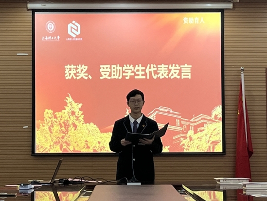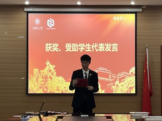 获奖学生代表杨佳盛、李志恒作交流发言。杨佳盛作为获奖学生代表,分享了对诚信、感恩与志愿服务的思考,提出“雷锋精神”可滋润心灵、志愿服务会强能增才,诚信做人能让生活更美好,勉励同学们继续弘扬、传承雷锋精神。李志恒作为受助学生代表,表达了对辅导员杨欣悦资助帮扶的浓浓谢意,倡议同学们奋发向上、敢于拼搏、夯实基础,常怀感恩之心、把爱心和善念传递下去。激情洋溢的发言引起了与会学生代表的强烈共鸣,掌声响彻会场。