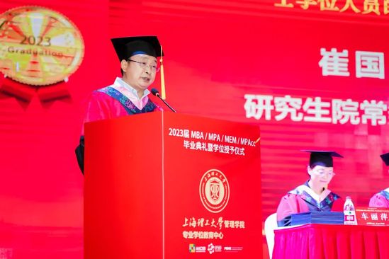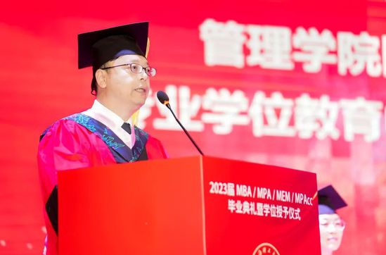 管理学院交通系统工程系党支部书记姚佼副教授分享了他的毕业寄语。2023届毕业生代表MBA刘君发言。江苏省启东市人大代表、汇龙镇人大主席、2015级MPA校友代表严颖熠为学弟学妹送上祝福。