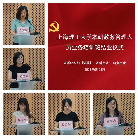 6月28日上午,培训班举行结业典礼。健康科学与工程学院彭为微、体育教学部翁丽菊、环境与建筑学院韩金锦、能源与动力工程学院霍中言、中德国际学院刘颖君等五位学员代表分别结合部门和工作实际做交流发言,学员们纷纷表示通过此次培训,思路更加清晰,目标更加明确,工作更有底气。