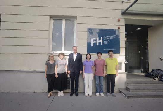 随后,代表团一行拜访了维也纳BFI应用科技大学,该校隶属于BFI教育集团;该集团是欧洲的重要高等教育机构之一,在德国汉堡等地区均设有分校。维也纳BFI应用科技大学致力于精英管理类及金融类人才培养,其毕业生遍布奥地利尤其是维也纳地区的各大金融机构。维也纳BFI应用科技大学校长Andreas Breinbauer热情接待了永利官网代表团,其国际交流处主任等一起参加了座谈。两校领导分别就各自学校的发展近况、国际认证优势学科和国际化战略进行了交流。双方在商科及经济管理专业合作方面达成了初步合作意向。