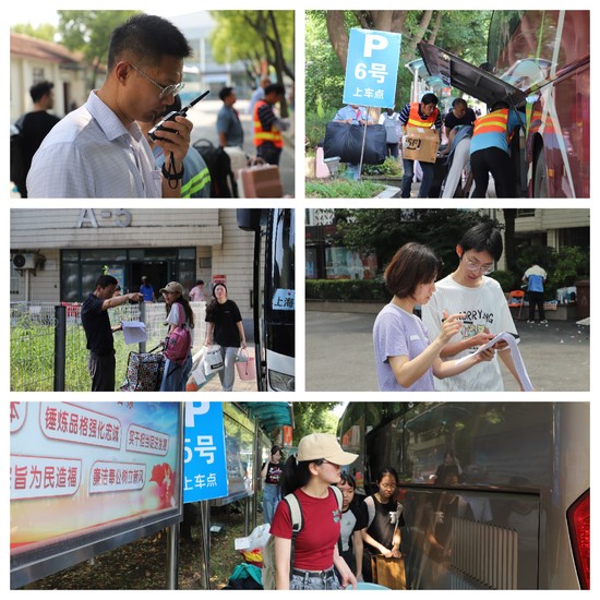 炎热的天气给搬迁工作带来了一定的难度。但是全体老师和志愿者们热情地为同学们提供帮助。老师们不厌其烦地一遍遍打电话提醒同学上车,认真核对每位同学信息,确保所有同学都安全上车;志愿者们来来回回帮助同学运送行李,协助装车;汗水浸透了每位工作人员的衣服,但大家内心都充满了成就感。在大家的努力下,搬迁工作虽然繁重,但整个过程却有条不紊,充满了团队协作的气氛。这种热情和专业的态度,让同学们深深感受到了学院和学校的关怀。