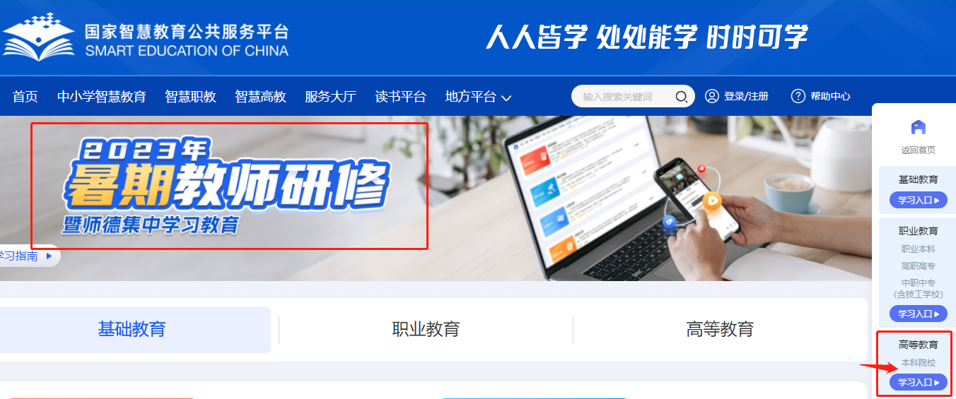 2.通过“高等教育”学习入口实名注册