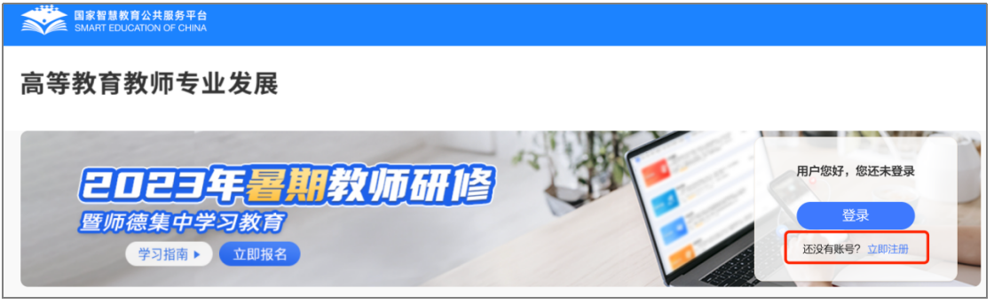 所有参训教师登录“国家智慧教育公共服务平台”( www.smartedu.cn)进入“2023年暑期教师研修暨师德集中学习教育”专题,通过“高等教育”学习入口实名注册后可进行学习。请按平台要求规范填写“部门(学院)、所在学校”等个人真实信息,已注册的教师可使用密码或手机验证码进行登陆。