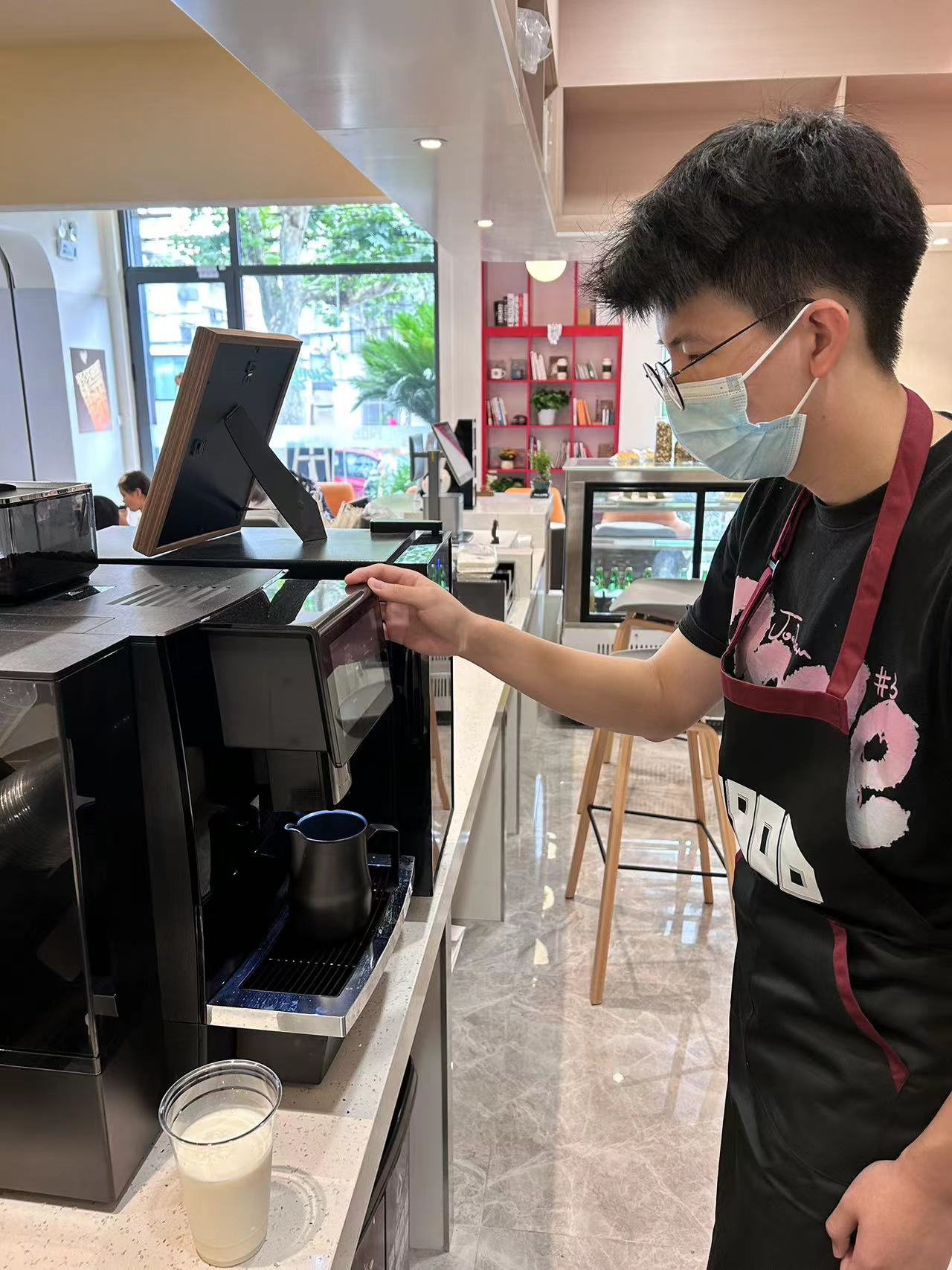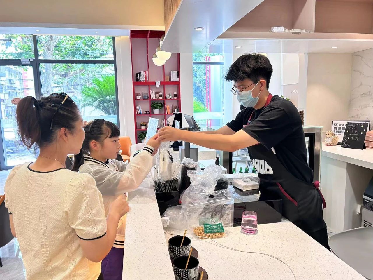 “小伙子,来杯冰拿铁!”姚阿姨带着孙女过来歇歇脚,跟罗文杰攀谈起来,“咖啡师带着腼腆和书生气,原来是大学生!”临近午休时间,咖啡馆里的客人陆续增多,罗文杰也开始忙碌起来。
