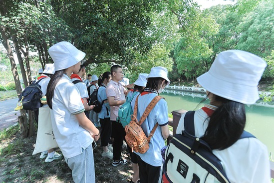 图说:刘伟博士带营员实地考察嘉定典型城市河道建设。主办单位供图