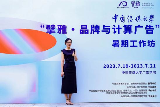 在第三届上海市高校教师教学创新大赛获得新文科组二等奖的“青椒”祝璇璇老师也在忙着“充电”。7月19日中国传媒大学主办“品牌与计算广告暑期工作坊”,祝璇璇与业界专家展开深入交流与研讨,以期为新学期的《中外经典广告案例分析》课堂引入更多与时俱进的内容。“在备赛过程中,我愈发感觉教学创新与广告产业之间联结的重要性,教学创新不仅仅是教学方法的创新,还有教学内容、教学平台的创新。教学内容的创新需要业界中实际案例的支撑,这样才能与时俱进,满足学生的需求;平台则在于构建线上线下混合式教学空间以及虚拟实验室,让学生真实感受数智时代广告媒介环境的变化。”