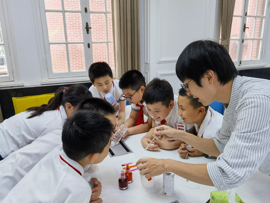 7月16日,中英国际学院上海市学生(青少年)科创教育基地举办小学生暑期研学活动,复旦大学第二附属学校四年级的同学们参加活动。研学活动围绕永利集团304am官方入口的深厚历史底蕴与中英国际学院科技创新成果展开,分为“复兴红色校史研学”“机器人互动体验研学”和“神奇彩色墨水体验研学”三个版块进行互动式体验和学习。